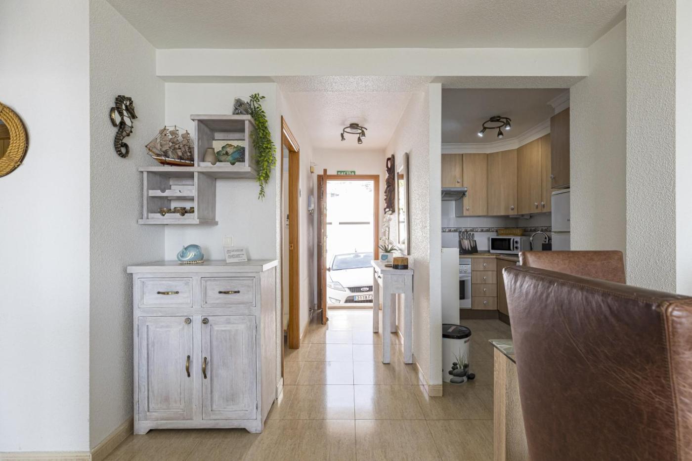 El apartamento tiene 2 dormitorios, 1 baño, ropa de cama, toallas, TV de pantalla plana, zona de comedor, cocina totalmente equipada y terraza con vistas al mar.