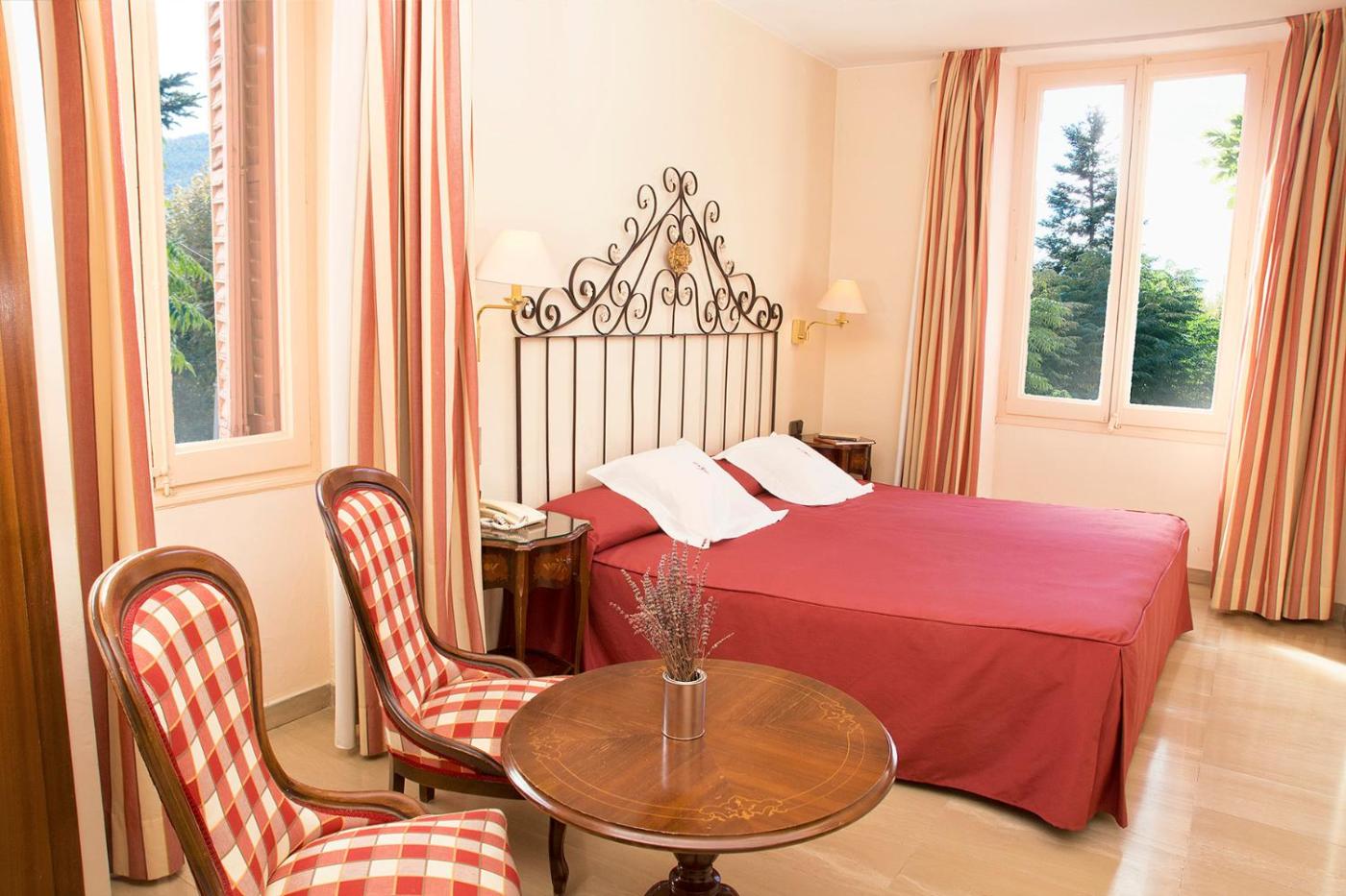 Habitación Doble Confort. Esta habitación más grande incluye aire acondicionado, TV de pantalla plana, conexión WiFi gratuita y escritorio. El baño tiene secador de pelo y artÃculos de aseo. Hay vistas al jardÃn o a la plaza del pueblo. ;