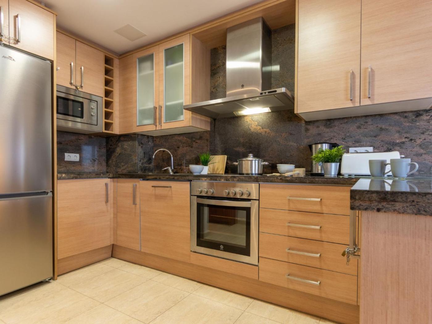 El apartamento cuenta con 2 dormitorios, una cocina con nevera y lavavajillas, y 1 baño con bañera, secador de pelo y lavadora. Se ofrece TV.