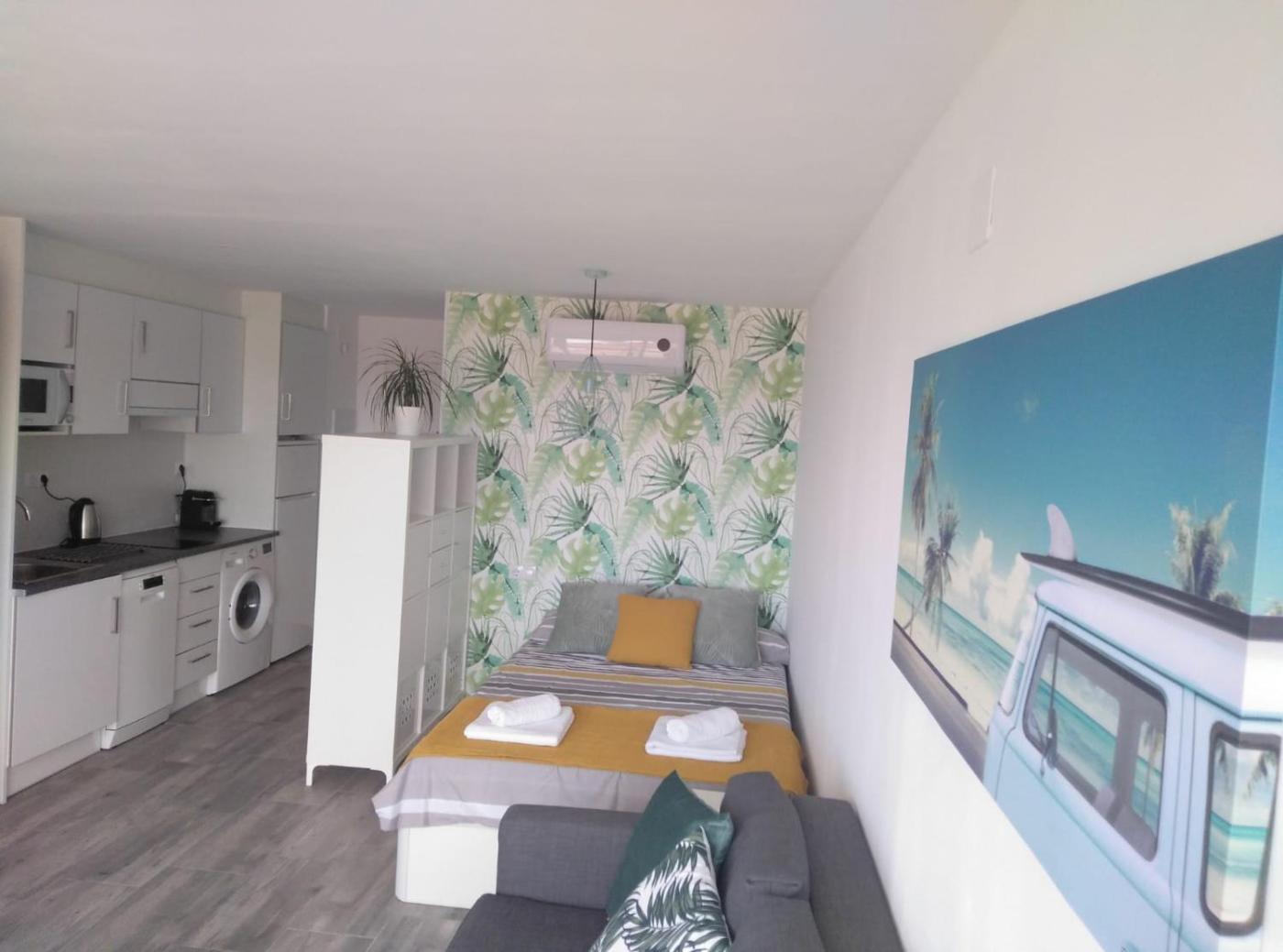 Apartamento Estudio con vistas al mar. The private pool is a top feature of this apartment. This air-conditioned apartment comes with 1 living room, 1 separate bedroom and 1 bathroom with a shower. Meals can be prepared in the kitchen, which features a refrigerator, a dishwasher, kitchenware and a microwave. The apartment has tiled floors, a seating area with a flat-screen TV, a washing machine, a coffee machine as well as sea views. The unit has 2 beds.