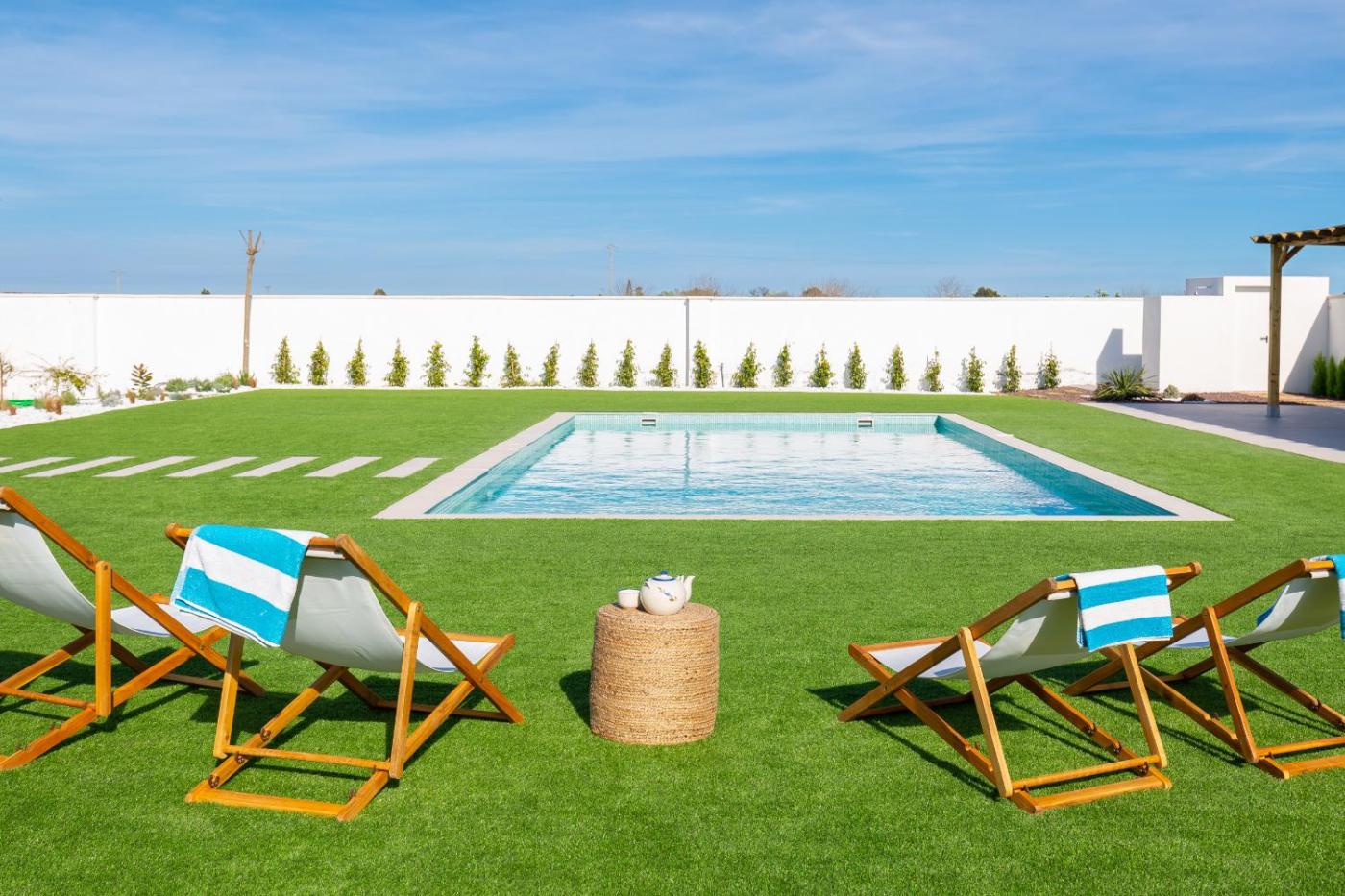 La villa dispone de piscina al aire libre, además de terraza.