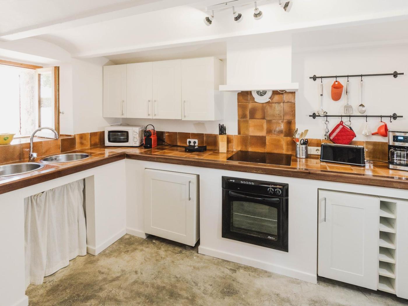 Esta casa o chalet con aire acondicionado consta de 3 dormitorios, una sala de estar, una cocina totalmente equipada con nevera y cafetera, y 2 baños con bidet y ducha. Hay toallas y ropa de cama en la casa o chalet.